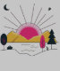 Ein strahlender Sonnenaufgang erhellt die Landschaft und strahlt ein warmes, goldenes Licht über die ruhige Landschaft. Kunstdesign-Bild für Mode-T - Shirt Kleidung_ Alle