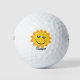 This sunshine design golf ball is white and dimpled, with a diameter of at least 1.680 inches (42.67 mm) and a mass no more than 1.620 ounces (45.93 grams). The dimples on the surface are crucial for aerodynamics, reducing drag and allowing the ball to travel farther. Golf balls are designed with multiple layers to optimize distance, spin, and feel. Sun design golf ball