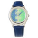 Kinderuhr aus Edelstahl mit blauem Lederarmband