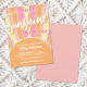 Feiern Sie die Ankunft mit dieser spielerischen Retro-Sonnendusche. Das Design zeichnet sich durch ein gewagtes, sonnenburstfarbenes Streifen-Muster in cremefarbenem, rosa, orange und gelb aus und schafft so eine lebendige und fröhliche Kulisse. Oben wird die Phrase "Ein kleiner Sonnenstrahl ist auf dem Weg!" in einer lustigen Mischung aus einem groben Retro-Schriftart, einem kühlen Drehbuch und einem einfachen serifenlosen Schriftart dargestellt, was ihm ein perfektes Rückzugsvibe verleiht. Am unteren Ende der Sonnenterrasse befinden sich alle wichtigen Veranstaltungsdetails, die in einer farbenfrohen Mischung aus Rosa, Orange und Gelb gehalten sind, um dem Retro-Sonnenburstthema zu entsprechen. Auf der Rückseite leuchtet eine größere Version der bunten Sonne hell auf der Karte. Wenn Sie ein mutigeres Aussehen gewollt haben, können Sie die weiche, transparente Ebene im Editor einfach entfernen, um die Farben noch mehr Pop zu machen. Dieses Design lehnt sich ein wenig mehr an ein kleines Mädchen an, hat aber trotzdem ein spielerisches und lebendiges Gefühl, das sich für jede Sonnendusche eignet. Es ist eine lustige Mischung aus Retro, Boho und modernen Stilen, perfekt um die Mutter-zu-be und ihren kleinen Sonnenstrahl zu feiern. Retro Sunburst ein wenig Ray von Sunshine Baby Dusche Einladung für Baby Girl rosa Orange Gelb. Erhältlich als gedruckte Einladung oder als digitale Einladung zum Download können Sie per E-Mail senden oder vor Ort gedruckt haben!