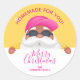 Erstellen Sie Aufkleber, um Ihre Weihnachtsferien hausgemachten Waren, Kekse, Süßigkeiten, Leckereien, Gastgeschenke und mehr mit einem sonnengebräunten Weihnachtsmann in einem heißen rosa Baseballdeckel und Ihre Nachricht in schicken Schriften zu kennzeichnen.