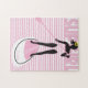 Ein niedliches stehen oben Paddelbrett-Fotopuzzlespielentwurf gerade für Mädchen. Eine Silhouette eines Mädchens auf einem paddleboard gegen einen Hintergrund der rosa Streifen und der gewellten Linien ist gerade nach rechts für jedes mögliches Wassermädchen, das Lieben der Sport des Schaufelns. Fertigen Sie sie besonders an - addieren Sie einen Namen!
