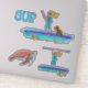 Fun SUP Sticker mit meinen illustrierten Designs. Tropisches Thema Stand-up Paddleboarding Mädchen mit ihrem Hund und eine große Meeresschildkröte. Künstlerische Aufkleber können zum Sommergeburtstag eines Teenagers oder zum Sommerwasser-Party mit Freunden verwendet werden. Oder fügen Sie die Aufkleber hinzu, um Cover, Schulordner oder Geschenkpackungen zu buchen.