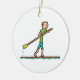 SUP Stand Up Paddleboard Design zeigt einen entspannten Experten stehend auf einem Paddelbrett mit einem Paddelpaddel in Pollänge, um es über das perfekte blaue Wasser zu treiben. Padleboarding mit Stil!