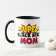 Trinken Sie Tee aus der Tasse "Super Black Belt" nach Ihrem Kampfsport-Unterricht. Es ist ein niedlicher Muttertag, Geburtstag oder Weihnachtsgeschenk. Ein Text schweres Design mit rot-gelben Farben dominiert es.