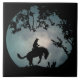 Ein Bronzespieler und ein Pferd, das von einem Vollmond geschrumpft ist. Ein sehr cooles Land Western Rodeo Kunst Fliesen.