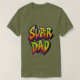 The 3D design features an eye-catching sign proclaiming "Super Dad" in big, bold, bold letters. The lettering is in a vibrant yellow and green, with a magenta shade that adds depth and realism to the three-dimensional design. This combination of bright colors and the 3D effect highlight the father figure as a true superhero in the life of his children.