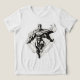 Ein T - Shirt-Design des Super-Menschen von Visualize ein schlankes Vektor-Logo, das ein Antiheld in einer dynamischen Pose darstellt. Die Figur ist in dünnen, zarten Linien umrissen, die eine Muskelphysik zeigen, mit einem Umhang, der elegant fließt. Das Emblem des Antiheros auf der Brust ist eine Mischung aus scharfen geometrischen Formen, die Kraft und Ästhetik verkörpern. All dies ist Set vor einem knalligen, weißen Hintergrund, macht das Logo Pop, verkörpert sowohl Power als auch sauberes, modernes Design.