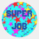 Der Rundaufkleber hat farbenfrohe Sterne mit "Super Job" in der Mitte des Aufklebers. Dieses Design kann individuell angepasst werden und macht auch ein lustiges Geschenk!