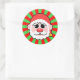 niedlicher Weihnachtsmann auf rot-grüner Sternexplosion bg rund Weihnachtsaufkleber
