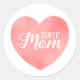 Super-Mama-Text in rosa gestrichenem Herzen Runder Aufkleber