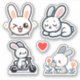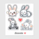 Phantastisches Aufkleber mit einem super niedlichen Hasen in vier verschiedenen Situationen, Blinken, Schlafen, Reiten eines Rollers und Riechen einer Blume. Bleiben Sie dran und verbreiten Sie Freude.