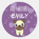 Super Niedlicher Mops Lila Herzdesign Runder Aufkleber