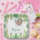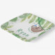 Die hellen und dunkelgrünen Dschungel-Blätter dekorieren dieses Dschungelthema | Teller zum Geburtstag der Frau. Sehr niedlicher Schlamm, der von einer hellgrünen Weinrebe im Dschungel hängt. Spaß liebende Schlampe ist ein blau-weißer Polodot Party Hut! Perfekte Teller für den Geburtstag von Tieren, Zoo, Hampe oder anderen Safari-/Dschungelthemen.