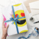 Der Fashionista wird Liebe, die dieses Verpackungspapier mit großen Regenbogenbögen schmückte, große rosa Bögen und mit Augen lächelnde Gesichter des trendy Herzens!