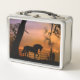 Ein hübsches Pferd in einem Sonnenuntergang mit einem Landzaun und einer Eiche aus Kulturdenkmälern, das ist so eine coole und hübsche Lunchbox. Große südwestliche Farben.