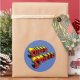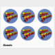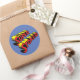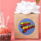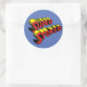Design zeigt die Worte "Super Stoked" in rot und gelb 3D-Schrift vor blauem Hintergrund