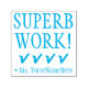 Dieses ermutigende Design der Gummi-Briefmarke beinhaltet die ermutigende Feedback-Nachricht "SUPERB WORK!" und den Namen eines angepassten Lehrers. Es ist auch mit einem dekorativen Karo versehen. Es könnte von einem Lehrer, Pädagogen oder Tutor verwendet werden, um anzuzeigen, dass der Schüler gut abgeschnitten hat.