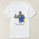 Personalisierter T - Shirt der Männer mit einer Abbildung des afroamerikanischen Vaters, der seinen Sohn hält, trägt er blaue und gelbe Kostüme und Kap; mit anpassbarer Textvorlage für Ihren Namen oder Ihre Nachricht