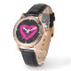 Uhr, Klassische Damenuhr mit schwarzen Lederarmband
