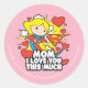 Karo aus diesem bezaubernden Cartoon Supergirl fliegen mit Herz und Regenbogen, mit dem Text "Mama I Liebe You This Much".