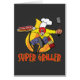 Ein Cartoon eines Mannes gekleidet als Superheld, der eine Platte der Steaks und der Hotdogs und der Spachtel auf einer Feuerhintergrund und -titel Supergrillvorrichtung verfügbar auf dem Grillen der T-Shirts, der Schürzen, der Hüte, der Knöpfe und mehr trägt. Machen Sie große Vatertags- oder Geburtstagsgeschenke.
