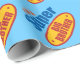 Verpackungspapier des großen Bruders des Spaßes hat einen hellblauen Hintergrund mit einem inspirierten Emblem des Superheldes, das sagt, dass ich ein super großer Bruder in dunkelblauem, Rot und Gelb bin.