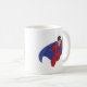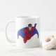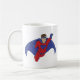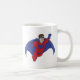 Illustration eines Superheldmannes gekleidet im roten und blauen Kostüm mit Kapfliegen durch die Luft