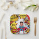Feiern Sie mit Stil! Diese Superhelden-Geburtstagseinladung zeigt die Karikatur Ihres Kindes, stehend heroisch in einem Stadtbild mit lebendigen Details aus gelben und roten Comicen. Legen Sie das Foto Ihres Superhero ein, um es zu realisieren!