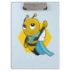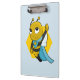 Clipboard with an illustration of a cute super hero bee with a cape in action pose, illustration by MaxiHarmony / Radka Kavalcova