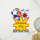Hier sind einige wirklich niedliche Superhero Dankeschön Karten für Kindergeburtstage, mit dem Namen Ihres Kindes auf der einen Seite und einem großen Dankeschön auf der anderen Seite. Dies ist eine flache, zwei Seiten Dankeschön-Karte mit viel Platz für Ihren kleinen Super-Held, um seine Dankesworte auf der Rückseite zu schreiben. Diese niedlichen Super Hero Einladungen haben einen Superhelden mit einem blauen Kap und einer roten Augenmaske mit einem "S" auf seiner Brust für Superhero. Neben dem großen Superhelden-Charakter ist ein Sternendesign in Rot und Blau. An der oberen Grenze der Einladung fliegen Superhelden über die Einladung. An der unteren Grenze sind Superhelden auf den Gebäude entlang der Skyline der Stadt stehend. Der Einladungstext wird in einem großen gelben Sternendesign zentriert. Die Rückseite der Einladung hat auch eine volle Farbe Superheld und ein weiterer Stern platzen in gelb und rot und Raum, um Ihren Dank zu schreiben. Der Hintergrund dieser Einladung ist weiß. Der Schriftart des Einladungstextes ist rot und blau in einem Schriftart im Comic-Buchstil. Dies sind niedliche und farbenfrohe Einladungen für Jungen, die Super Heroes oder Comic Book Figuren Liebe.