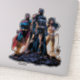 Passen Sie Ihr Produkt mit Jim Lees Dreifaltigkeitskunst von Superman, Batman und Wonder Woman auf einem felsigen Hügel bei Sonnenuntergang an.