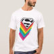 Gleichstrompreis| Superman's ikonisches Logo mit Schichten von Regenbogenfarben projiziert dahinter.
