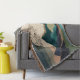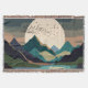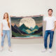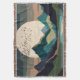 Eine abstrakte Landschaft eines gewaltigen Supermonds in einer Bergsee-Szene mit einer Vogelherde in kühnen Texturen und dunkelerdigen Tönen aus Braun, Beige, Bräune, Blau, Zyan und Schwarz.