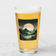 Eine abstrakte Landschaft eines gewaltigen Supermonds in einer Bergsee-Szene mit einer Vogelherde in kühnen Texturen und dunkelerdigen Tönen aus Braun, Beige, Bräune, Blau, Zyan und Schwarz.