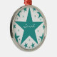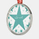 Superstar Kollektion Premium Round Ornament in aquamarin mit einer Kaskade von lustigen Stars. Dieses niedliche und mädchenhafte Sterndesign würde eine tolle Gabe für jede Tochter, Nichte oder andere junge Frau in Ihrem Leben sein. Dieser lustige Stern würde durch einen Namen und/oder einen personalisierten Gruß ein schönes Sake-Ornament machen.