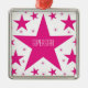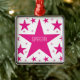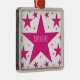 Superstar Kollektion Premium Square Ornament in magenta mit einer Kaskade von lustigen Sternen. Dieses niedliche und mädchenhafte Sterndesign würde eine tolle Gabe für jede Tochter, Nichte oder andere junge Frau in Ihrem Leben sein. Dieser lustige Stern würde durch einen Namen und/oder einen personalisierten Gruß ein schönes Sake-Ornament machen.