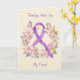 A sweet card for a friend or family member who has Fibromyalgia and you want them to know you are thinking about them. Inside is a supportive poem letting the person know you think they are strong, have courage and inspire you. The front is a beautiful purple watercolor awareness ribbon with butterflies, flowers and birds.