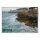 Eine digitale Darstellung des Surfens auf den Felsen von Nahariya, Israel am Mittelmeer. Nahariya ist Israels nördlichste Küstenstadt, 10 km von der Grenze zum Libanon entfernt. Ein mit Restaurants, Kaffeehäusern und Palmen gesäumter Weg verläuft parallel zu den langen, sauberen Stränden der Stadt. Ebenfalls erscheint die benutzerdefinierte hebräische Textaussage "Nahariya" (נ ה ר י ה). Geben Sie Ihren eigenen Text ein, um das Hebräisch zu ersetzen.