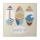 Surf ist auf! Ich bis Juni Erica Vess. Mit drei Surfbrettern mit verschiedenen, lustigen Designs und "Surf's Up" Phrase am unteren Bildrand.
