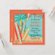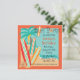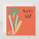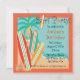 Super farbenfrohe Surf-Party Einladung für jeden Anlass! Ideal für eine Geburtstagsfeier mit bunten Surfbrettern, Palmen, Ti Fackel und Muscheln.