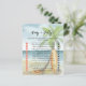 Baby an Bord! Baby Dusche Einladung - perfekt für eine Sommerdusche. Thema Strand. Das Aquarelldesign besticht durch eine Ozean- und Strandlandschaft mit Surfbrett, Palmen und Sommerhut.