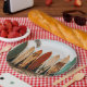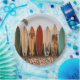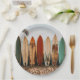 Papier Party Teller mit dem Bild von Surfbrettern am Strand.