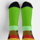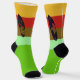 Surfbretter auf jeder Seite der Kälber mit einem bunten Streifen Design in gelb, rot, braun und hellgrün, bis zur fünften, letzten Farbe, grün, für den Fußteil der Socken. Ungewöhnlich, farbenfroh und repräsentativ für Ihr Hobby und Ihren Lebensstil. Erhältlich in verschiedenen Varianten.