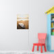Surfbrett am Strand bei Sonnenuntergang Poster