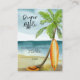Baby an Bord! Baby Dusche Einladung - perfekt für eine Sommerdusche. Thema Strand. Das Aquarelldesign besticht durch eine Ozean- und Strandlandschaft mit Surfbrett, Palmen und Sommerhut.