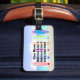 Stehen Sie heraus im Gepäckkarussell mit einem Surfbrett-Strand-Gepäckanhänger, der einen Strandhintergrund mit Sand, Ozean und Himmel kennzeichnet, 6 bunt verzierte Surfbretter. Text wird für Ihren Namen, Adressen- und Telefonzahl oder jeder möglicher Text gegründet, die Sie wollen. Perfektes Geschenk für Surfer in Ihrem Leben. Lederner Gepäckbügel eingeschlossen.