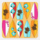 Surfbretter auf dem Boardwalk Summer Beach Thema Quadratischer Aufkleber