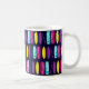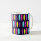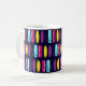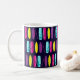 Spaß Surfbrett gemusterte Tasse. Auf einem dunkelblauen Hintergrund mit Reihen von bunten Surfbrettern.
