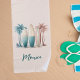 Wasserfarbene Surfbretter und Palmen in Grün, Gelb und Orange. Cremefarbener Hintergrund. Personalisieren Sie Ihren Namen und fügen Sie ihn hinzu.